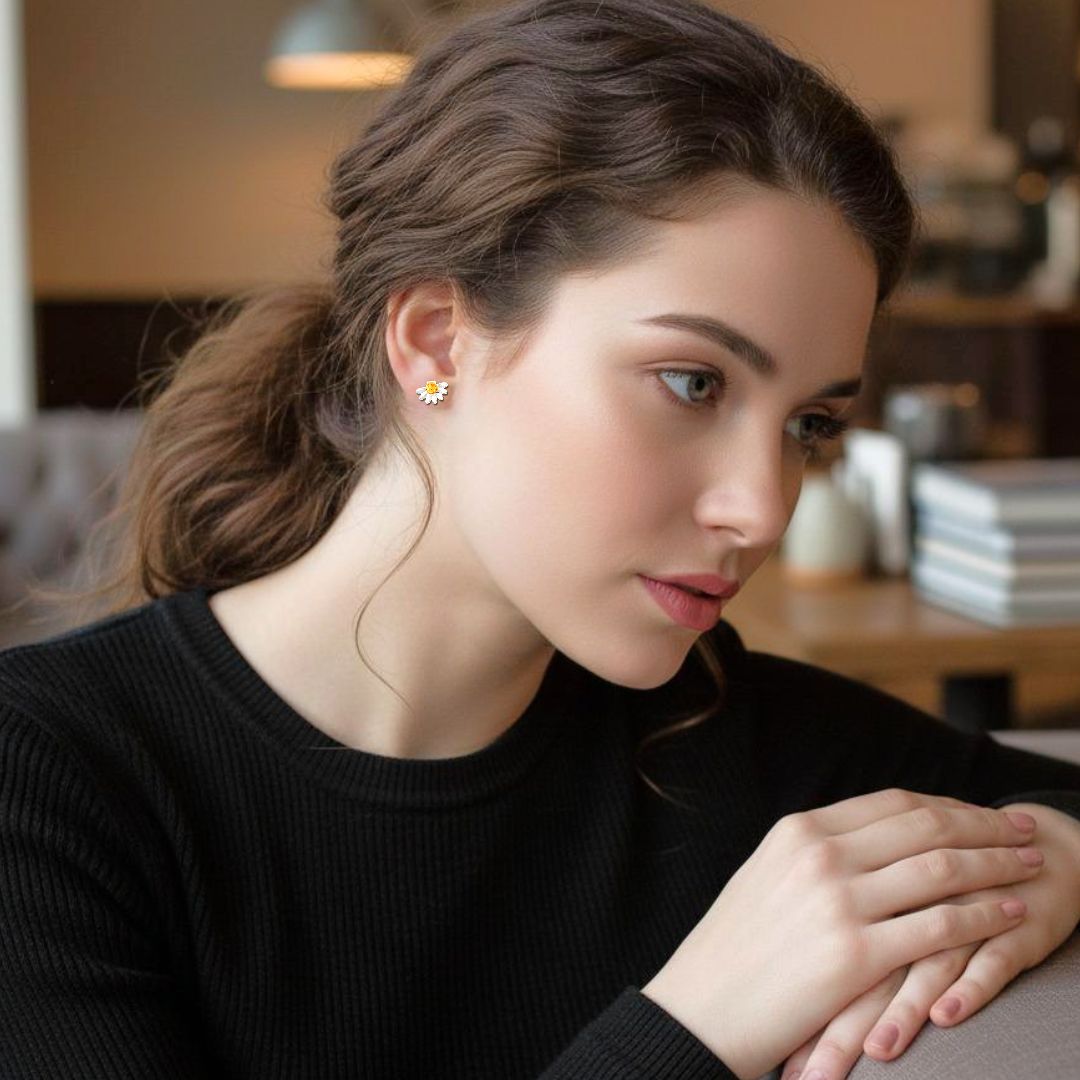 Εξαιρετικά σκουλαρίκια καρφωτά από ασήμι 925 με επίχρυση χρυσού, διακοσμημένα με το μοτίβο της μισής μαργαρίτας. Κάθε κομμάτι είναι χειροποίητο με προσοχή στη λεπτομέρεια, αποτελώντας ένα διαχρονικό κλασικό που συνδυάζεται αβίαστα με οποιοδήποτε στυλ. Η ελάχιστη αισθητική και η κομψή σχεδίαση τα καθιστούν ιδανικά για καθημερινή χρήση και ειδικές περιστάσεις. Μια επένδυση σε αιώνια κομψότητα.