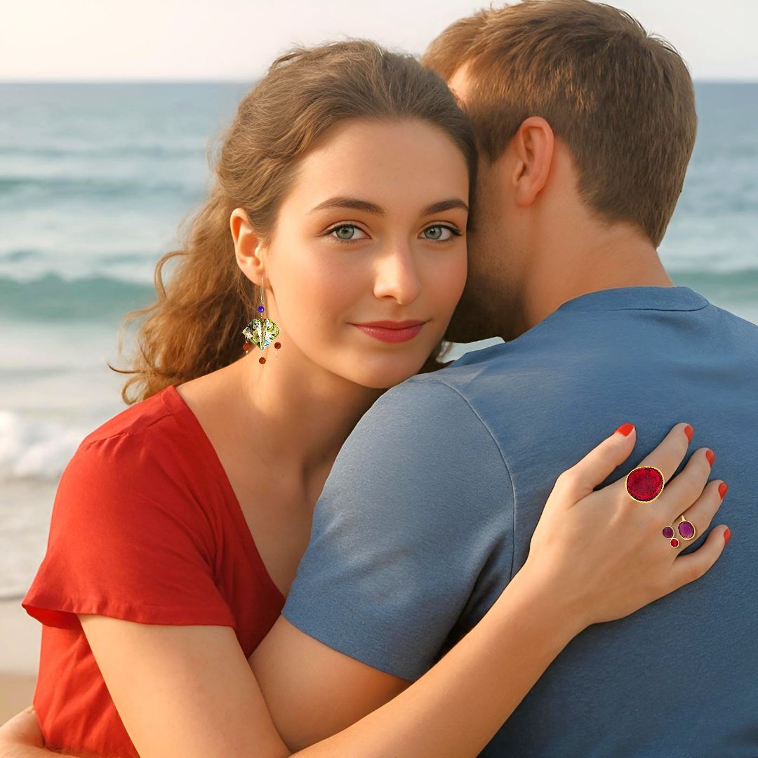 Σκουλαρίκια Οριγκάμι Πολύχρωμα Manta Rays με Ημιπολύτιμους Λίθους