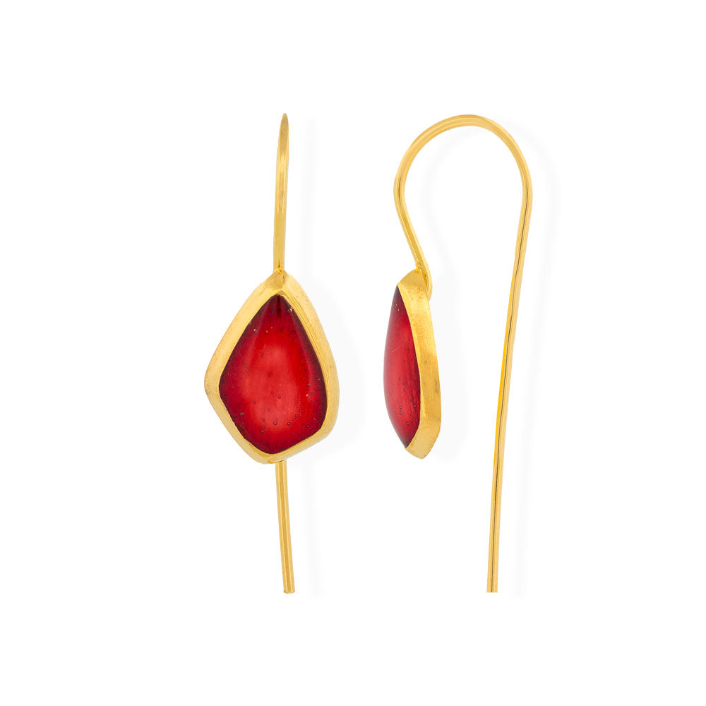 Αυτά τα χειροποίητα σκουλαρίκια συνδυάζουν τη λάμψη του επίχρυσου ασημιού με το έντονο κόκκινο σμάλτο, δημιουργώντας ένα κομψό και ζωντανό αξεσουάρ. Σχεδιασμένα με τεχνική ακρίβεια, προσαρμόζονται άψογα σε κάθε στυλ—από ελάχιστες εμφανίσεις έως τολμηρές, χρωματιστές συνθέσεις. Το χρυσό επίχρυσμα αντανακλά το φως με μαγευτικό τρόπο, ενώ το λαμπερό κόκκινο σμάλτο προσδίδει έντονη χρωματική παρουσία. Ιδανικά για όσους εκτιμούν την τεχνοτροπία και τη χρωματική έκφραση, αυτά τα κρεμαστά σκουλαρίκια είναι ελαφριά και άνετα για όλη την ημέρα. Ένα επενδυτικό κομμάτι που γιορτάζει τόσο την χειροτεχνία όσο και την προσωπική σας ταυτότητα.. Φορέστε τα με το ασορτί δαχτυλίδι μας.