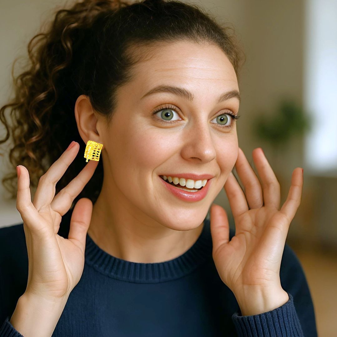 Expertly crafted with a unique design, these handmade gold plated silver stud earrings are the epitome of class and artistry. The rectangular shape, adorned with sparkling zircons, adds a touch of elegance to any outfit. Elevate your style with these exquisite earrings.