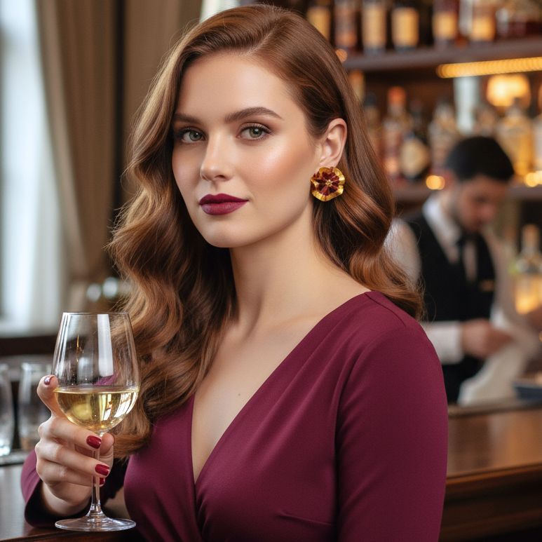 Named after the charming primula flower, these medium-sized earrings boast a circular design crafted from lush burgundy leather, elegantly complemented by delicate gold leaf detailing. Infused with the allure of nature's simplicity and the luxury of gold, these earrings offer a subtle yet captivating addition to your ensemble.