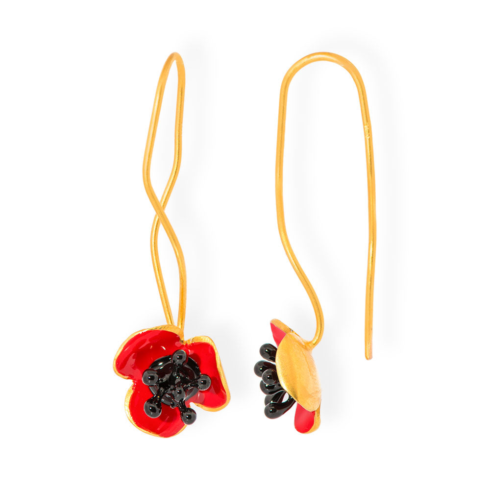 Questi orecchini pendenti fatti a mano, a forma di papavero rosso, traggono ispirazione dalla vibrante bellezza della natura greca. Il design artistico esalta i dettagli delicati del fiore, mentre la lavorazione artigianale garantisce un accessorio versatile e raffinato, perfetto per arricchire ogni look con un tocco di colore e originalità.. Modellali con il nostro anello coordinato!